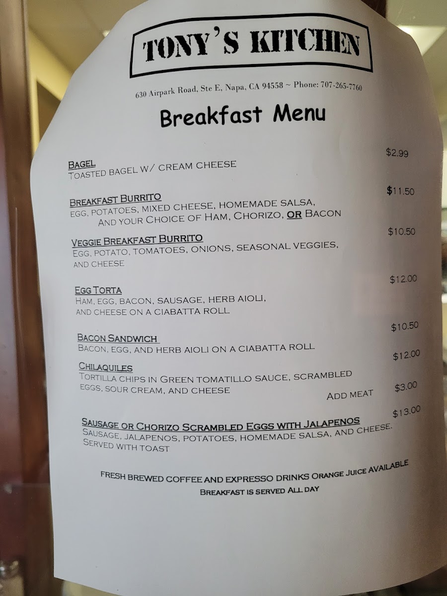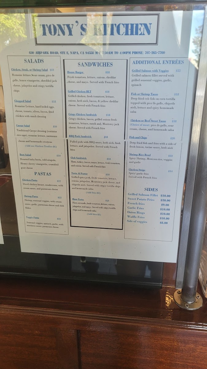 Stepping into Tony's Kitchen Menu feels a bit like discovering a local secret tucked away on Airpark Road in Napa. The place has an easygoing vibe, and the food follows the same spirit-simple, comforting, and full of flavor. As you look through the offerings, you’ll notice how each dish leans into freshness without trying too hard, whether it’s hearty breakfast plates, stacked sandwiches, or warm, satisfying lunch specials.